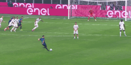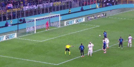 第8分钟,恰尔汗奥卢开出任意球,劳塔罗头球顶高